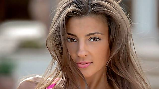 Hot brunette Eva Black in solo action, teasing with her peaches.