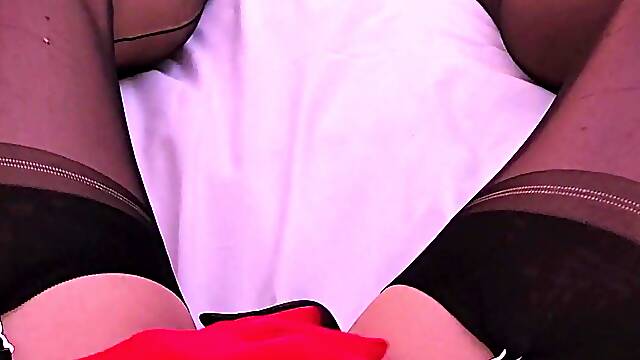 Office Slut Michelle Moist Wanks off in Sexy Girdle Stockings and Heels