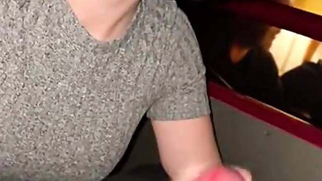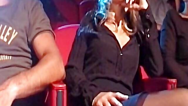 Superb girl decided to play with a dick in the cinema and jizm all over couch