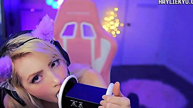 ASMR thirty minutes throat sounds, astounding lens licking and magic tongue movements