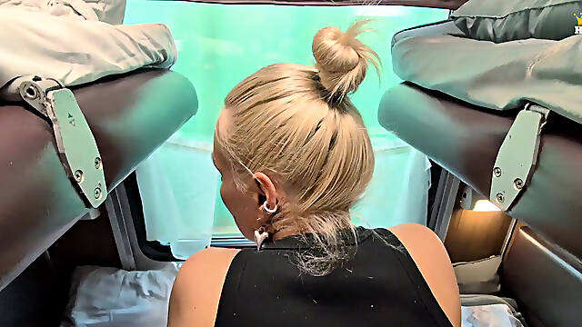 Real amateur blonde gives a hot POV blowjob on the train