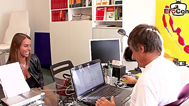Horny housewife goes to the doctor and having the threesome quickie fuck of her life