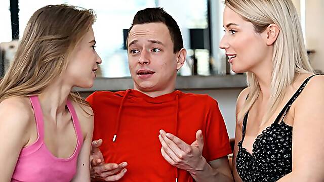 Violet Gems and Aubry Babcock have a foursome on the couch