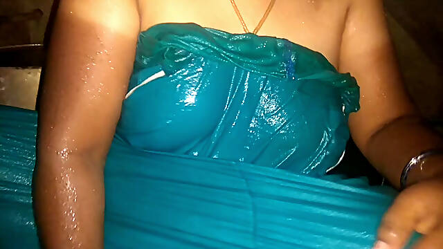 Tamil aunty bathing in village