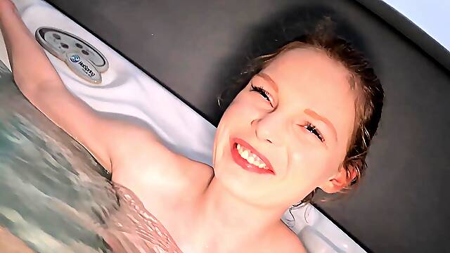 Teen Couple Masturbates With The Jet Stream And She Gets Fingered In The Sauna Pool