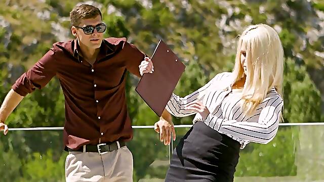 Underwater blowjob & raw pool side fucking with busty slut Kyle Mason