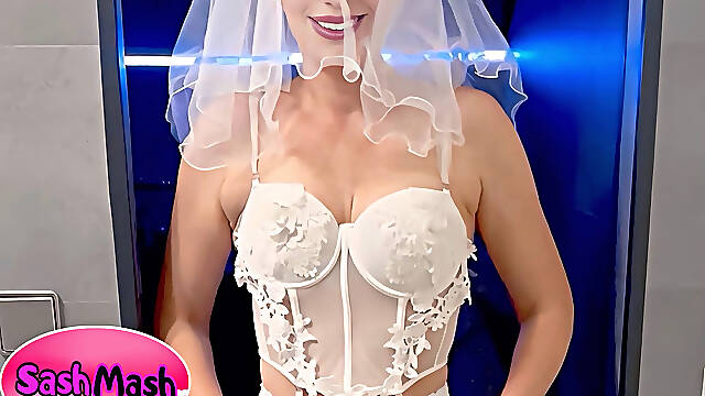 BRIDE4K. Wedding bride opens her thighs for the wedding planner for assistance