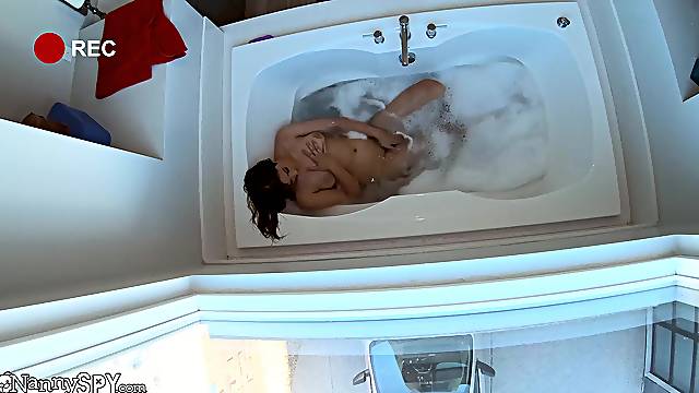 I spy my roommate when this babe play and bang with her Tinder date in the shower