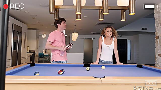 Wild fucking on the pool table with skinny crush Allie Addison