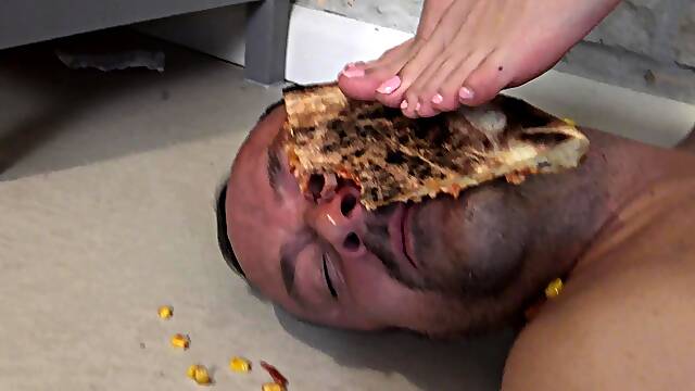 Pitiful slave mercilessly pegged by busty strapon mistress