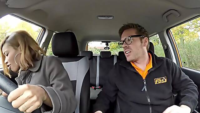 Fake Driving School - Black cutie KIKI MINAJ having sex in a car in a PUBLIC area