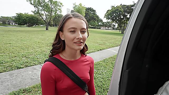 Cute Redhead Teen Busted Masturbating then Sucks Off Stranger in Public Parking Lot