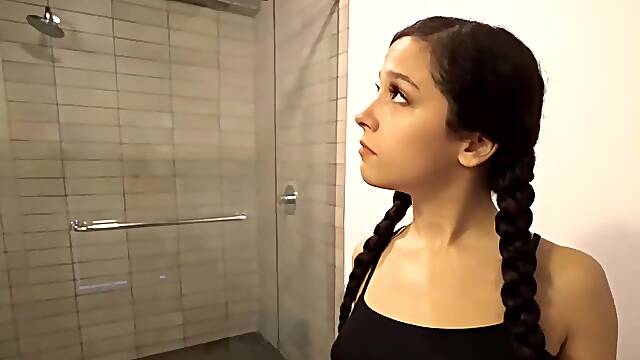 Filthy stepdaughter Lily Larimar wants daddy to wash her in the shower