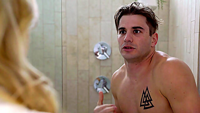Smashing blonde mom fucked by stepson under the warm shower