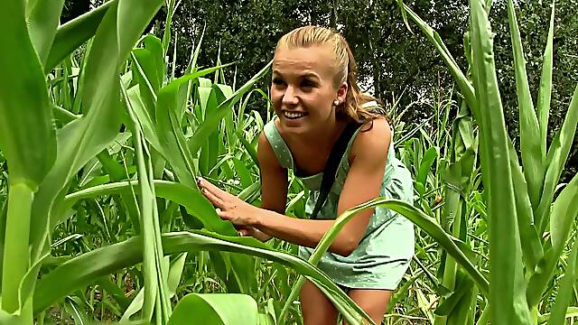 Angelica Sin gets a hardcore outdoor cumshot in garden fun with her Brunette Hustler
