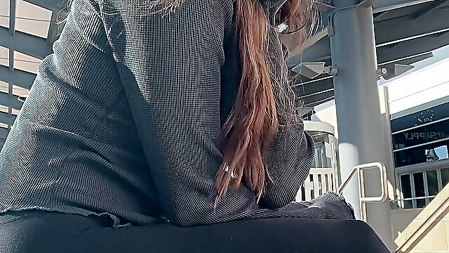 Pussy flashing to stranger in public! my cuckold husband records everything