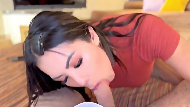Trans babe shoots cum after blowjob
