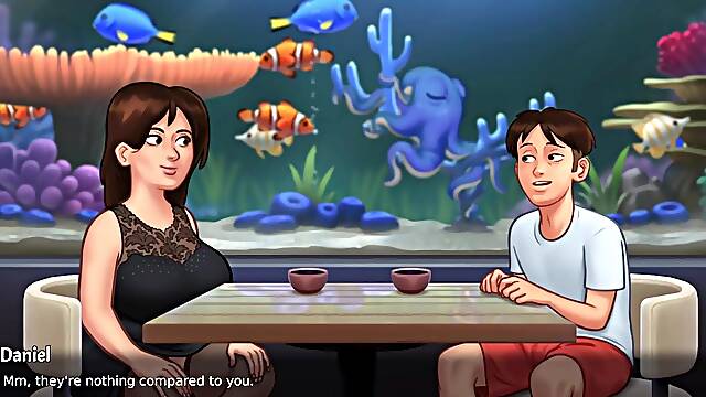Summertime Saga - Breasty Stepmom gets rammed by a large shlong after a romantic date
