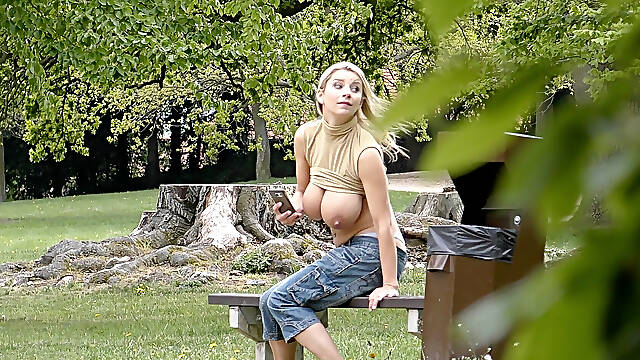 Watch Me From Behind Trees When I Make Naked in Park and Milking My Boobs