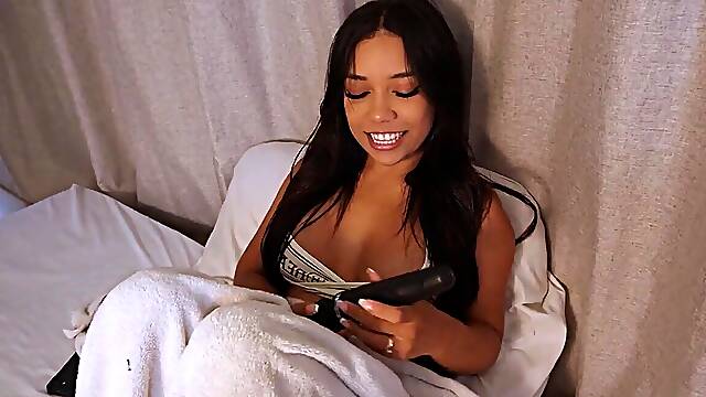 My stepsister Rides my massive rod to get the remote! big beautiful woman Latin babe with juicy twat rides a giant penis