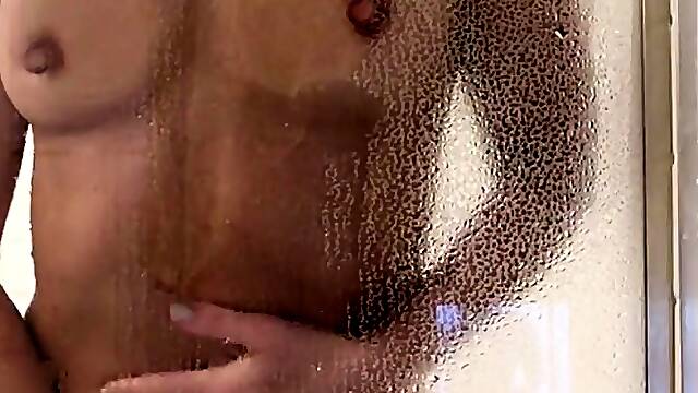 Busty amateur milf masturbates in the shower